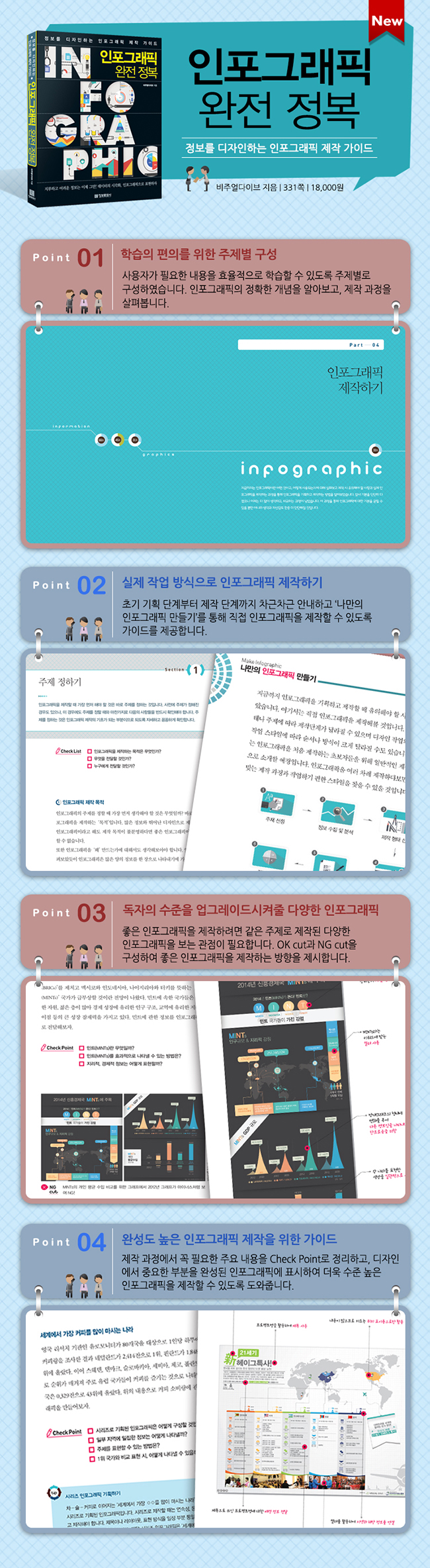 ÀÌ Ã¥¿¡¼ ´Ù·ê ³»¿ë Àϻ󿡼 ½±°Ô º¼ ¼ö ÀÖ´Â ÀÎÆ÷±×·¡ÇÈÀ» µÇ¤¾îº½À¸·Î½á ÀÎÆ÷±×·¡ÇÈ¿¡ ´ëÇÑ Á¤ÀǸ¦ ³»¸®°í Á¤È®ÇÑ °³³äÀ» ÀÌÇØÇÒ ¼ö ÀÖ½À´Ï´Ù. ÀÎÆ÷±×·¡ÇÈÀÇ ÇüÅÂ¿Í ÀÎÆ÷±×·¡ÇÈÀÌ °¡Àå ¸¹ÀÌ È°¿ëµÇ°í ÀÖ´Â ºÐ¾ß¸¦ ¼Ò°³ÇÏ¿© ÀÎÆ÷±×·¡ÇÈÀ» óÀ½ Á¢ÇÏ´Â µ¶ÀÚµµ ±Ý¹æ Ä£ÇØÁú ¼ö ÀÖ½À´Ï´Ù. ÀÎÆ÷±×·¡ÇÈÀ» Á¦ÀÛÇϰíÀÚ ÇÏ´Â »ç¶÷µéÀ» À§ÇØ Ãʱ⠱âȹ ´Ü°èºÎÅÍ Á¦ÀÛ ´Ü°è±îÁö Â÷±ÙÂ÷±Ù ¼³¸íÇÕ´Ï´Ù. ³ª¸¸ÀÇ ÀÎÆ÷±×·¡ÇÈ ¸¸µé±â¸¦ ÅëÇØ Á÷Á¢ ÀÎÆ÷±×·¡ÇÈÀ» Á¦ÀÛÇÒ ¼ö ÀÖµµ·Ï °¡À̵带 Á¦°øÇÕ´Ï´Ù. ÅØ½ºÆ®·Î ÀÌ·ç¾îÁø Á¤º¸¸¦ ÅëÇØ ¾î¶² ÀÎÆ÷±×·¡ÇÈÀ» Á¦ÀÛÇÒ ¼ö ÀÖ´ÂÁö »ìÆìº¸°í, ÁÖÁ¦º°·Î Ã¼Å©ÇØ¾ß ÇÒ ±¸¼º »çÇ×µé°ú °Á¶ÇØ¾ß ÇÏ´Â ³»¿ë µîÀ» ¾Ë·ÁÁÝ´Ï´Ù.