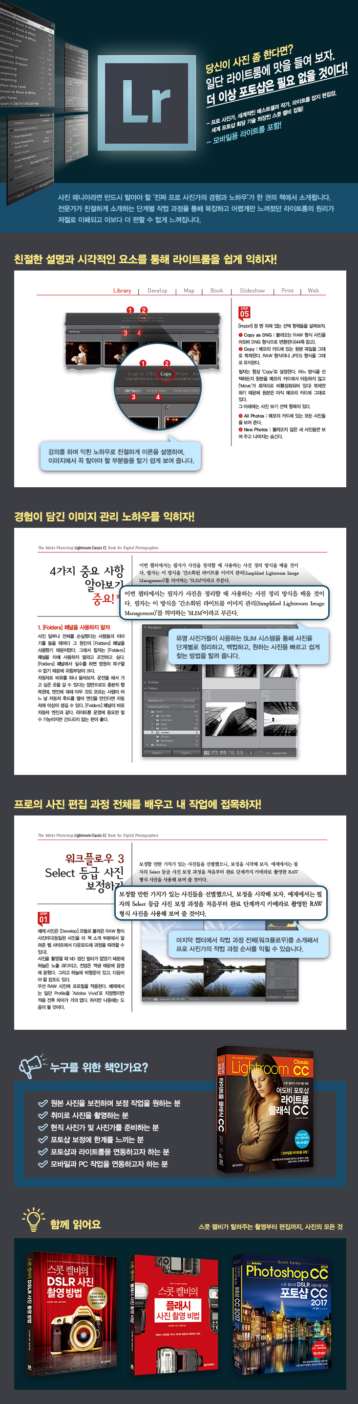 ÀÌ Ã¥Àº ´Ü°èº° ·¹½¼À» ÅëÇØ, ÇÁ·Î »çÁø°¡ÀÌÀÚ, »çÁø ºÐ¾ß º£½ºÆ®¼¿·¯ ÀÛ°¡À̸ç, ¶óÀÌÆ®·ë Àü¹®°¡ÀÎ ÀúÀÚ°¡ Å͵æÇÑ ÃÖ°íÀÇ ¼³Á¤°ú ±â¹ý, ³ëÇϿ츦 ¾òÀ» ¼ö ÀÖ½À´Ï´Ù. ¶ÇÇÑ ÀúÀÚ´Â ¿À·£ °­ÀǸ¦ ÅëÇØ Å͵æÇÑ ÀÌÇØÇϱ⠽¬¿î ¾ð¾î·Î ÀÛ¾÷ÀÇ ±âÃʺÎÅÍ ¸¶¹«¸®±îÁö ¼³¸íÇÏ¿© µ¶ÀÚµéÀÌ ¶óÀÌÆ®·ëÀ» Áñ°Ì°Ô ¹è¿ì¸é¼­ ÇÁ·Î »çÁø°¡ÀÇ ½Ç·ÂÀ» °®Ãâ ¼ö ÀÖµµ·Ï µ½½À´Ï´Ù.